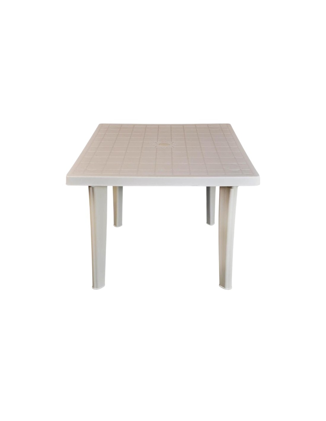 Această masă pentru grădină din plastic este un model simplu, practic și accesibil, ideal pentru utilizare în aer liber sau în spații casual: