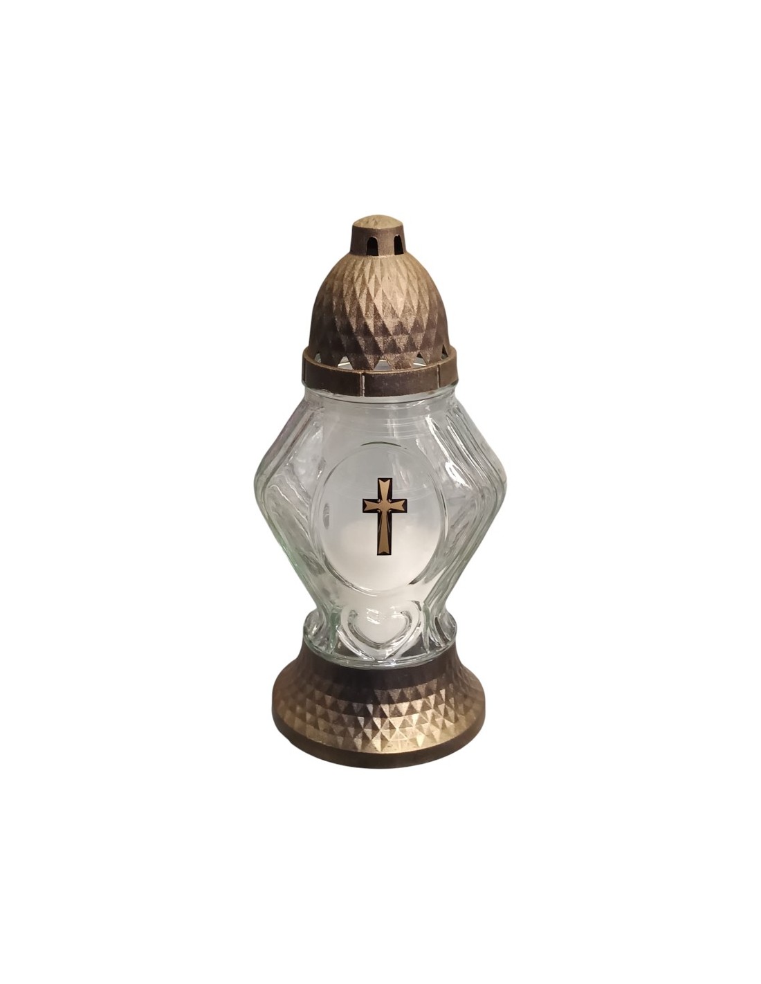 Adaugă o notă de liniște și eleganță oricărui colț al casei sau cimitirului cu această candelă rafinată din sticlă, dotată cu capac.
