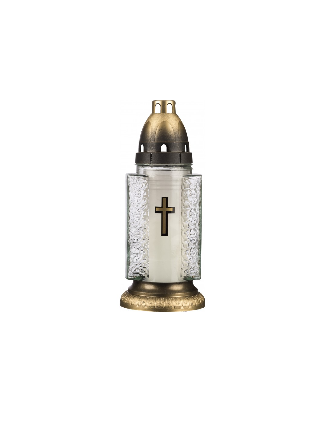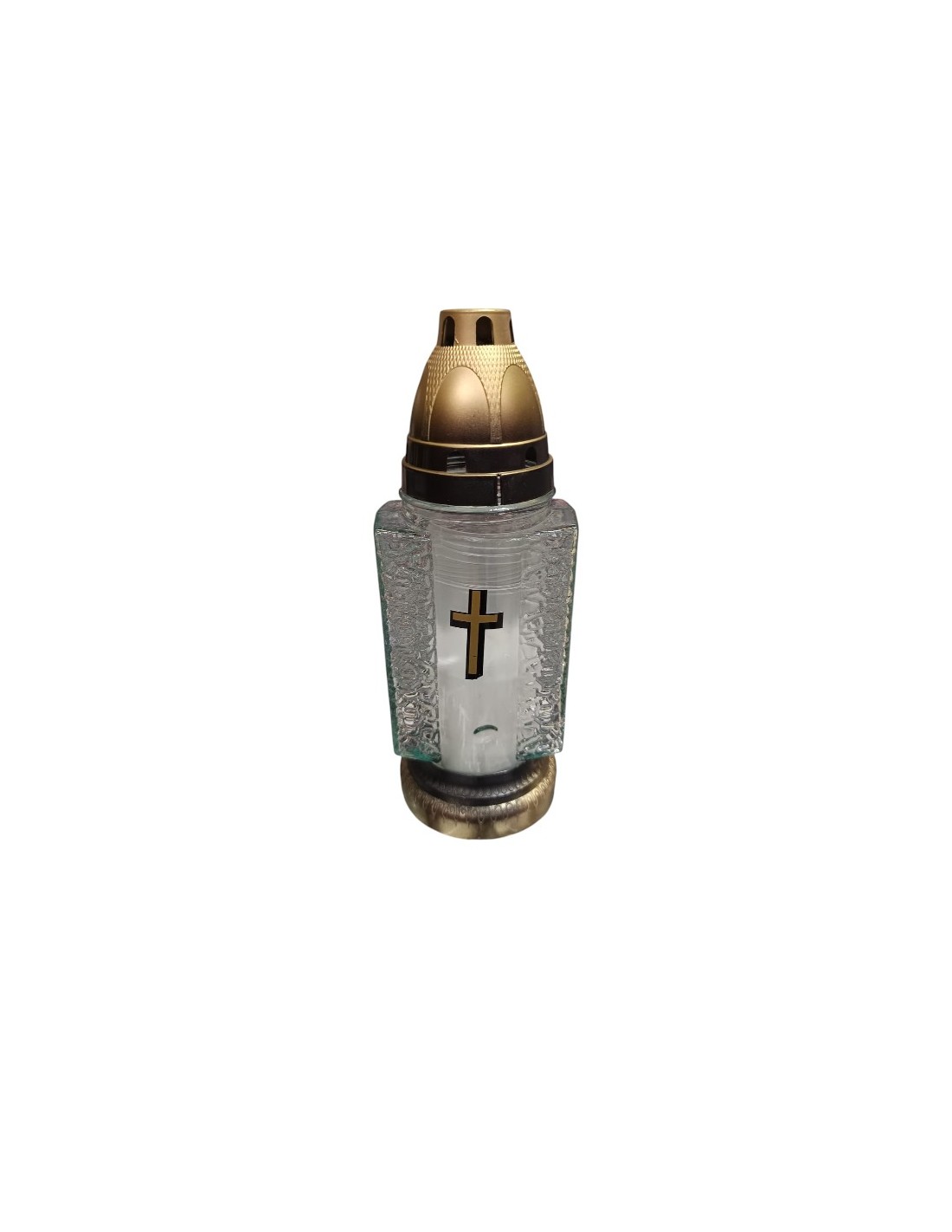 Adaugă o notă de liniște și eleganță oricărui colț al casei sau cimitirului cu această candelă rafinată din sticlă, dotată cu capac.