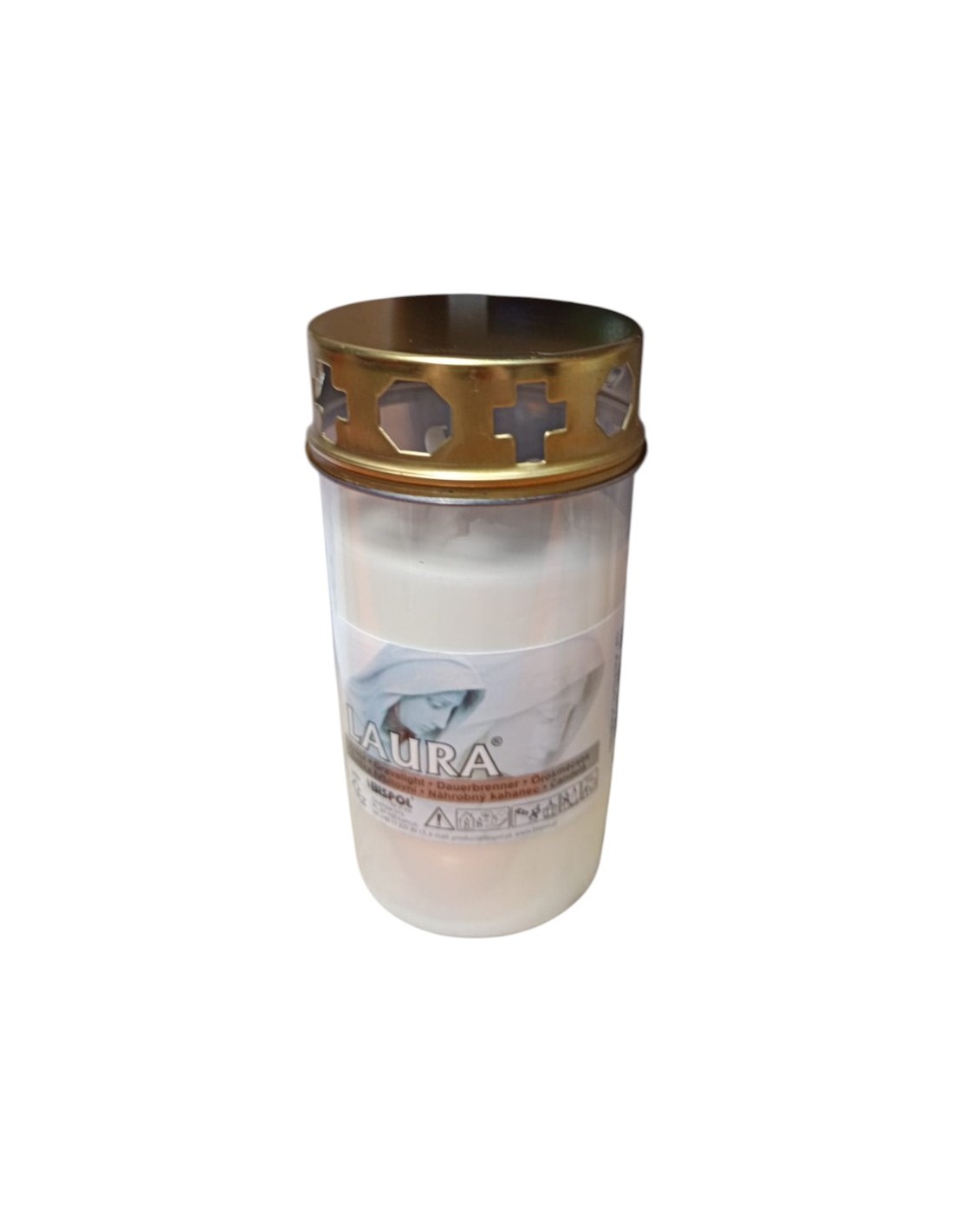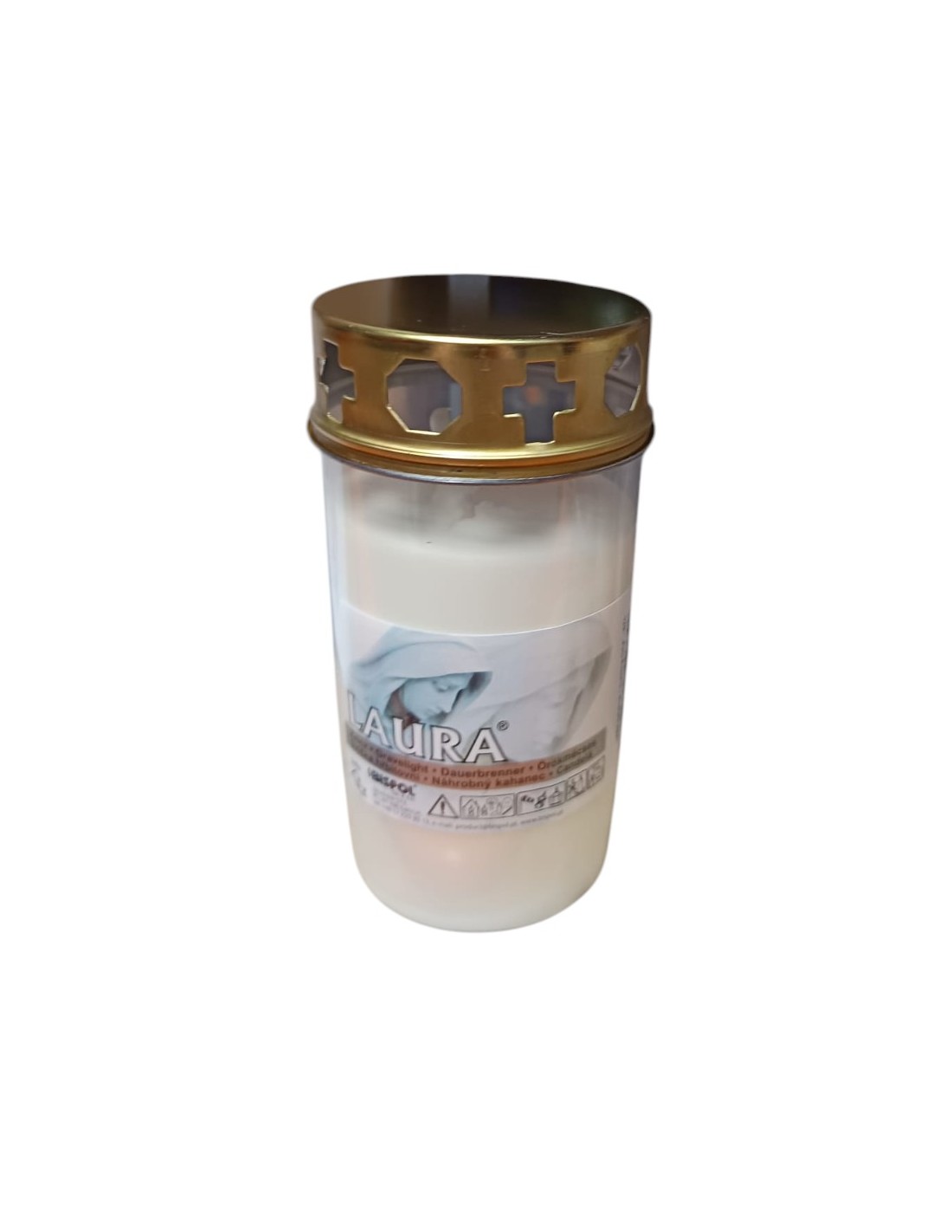 Rezervă pentru candelă din plastic cu capac metalic, model Laura W3 DC, cu dimensiunile 120 x 55 mm. Fabricată din plastic rezistent la temperaturi ridicate și prevăzută cu capac metalic, această rezervă asigură o ardere constantă și sigură, protejând flacăra de curenții de aer și prelungind durata de utilizare.