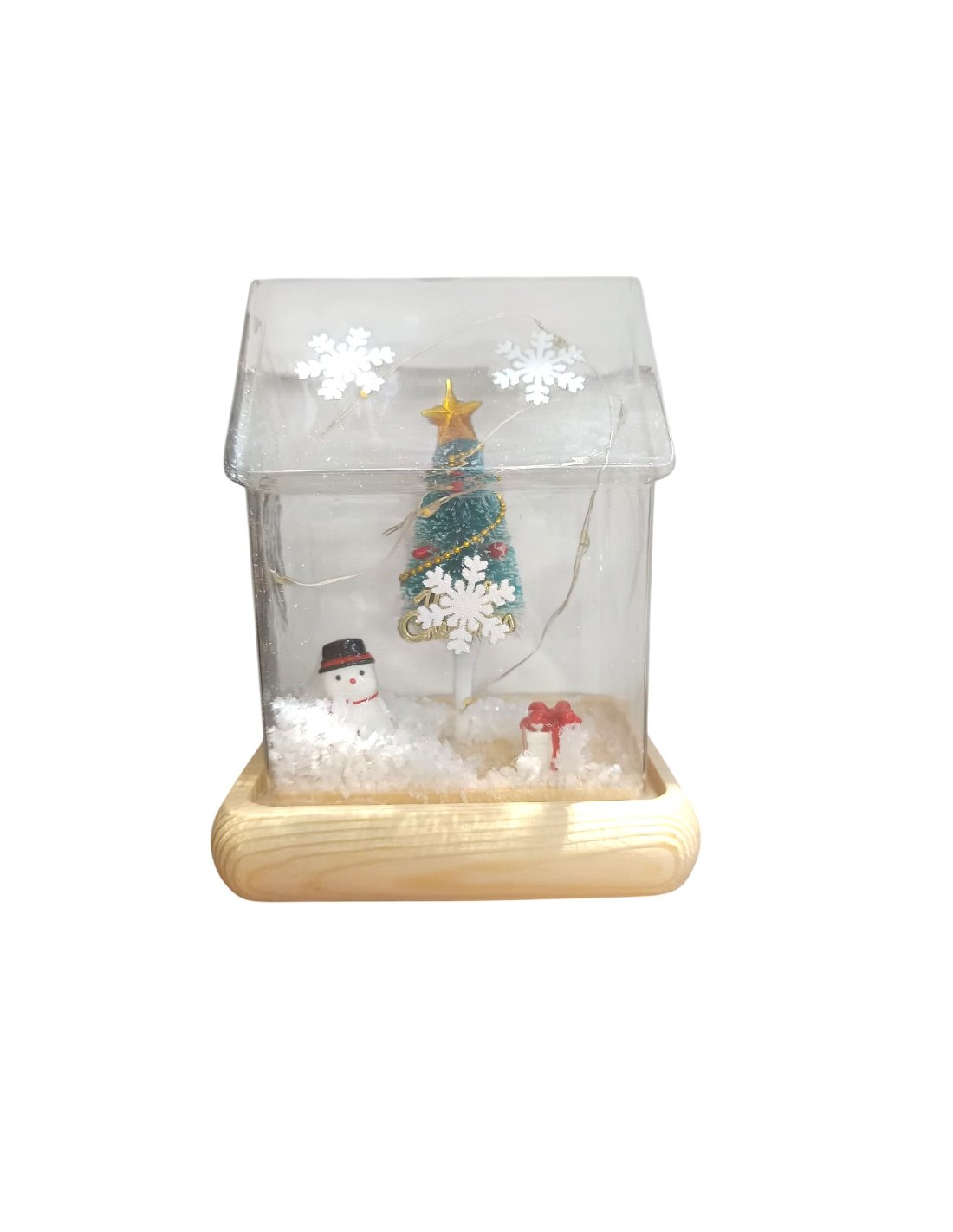 Ornament decorativ de Craciun cu Led, forma de biserica cu Sfanta Familie, 35 cm