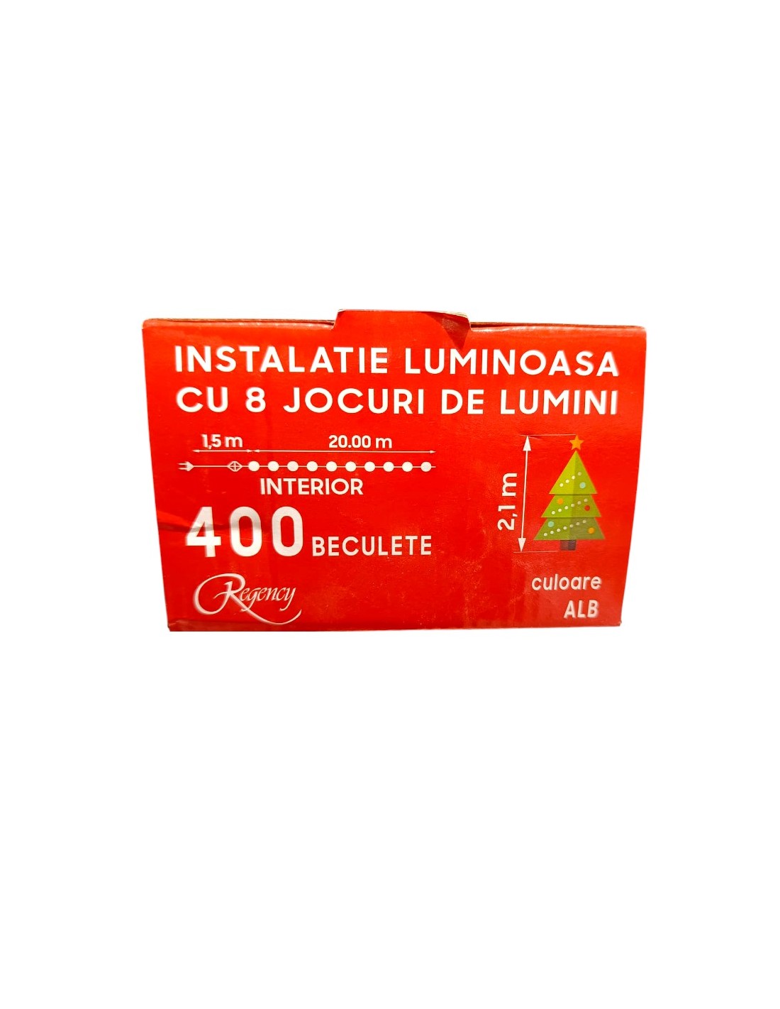 Instalatie de Craciun, 20 metri, sirag luminos cu 8 jocuri de lumini, 400 de LED-uri alb