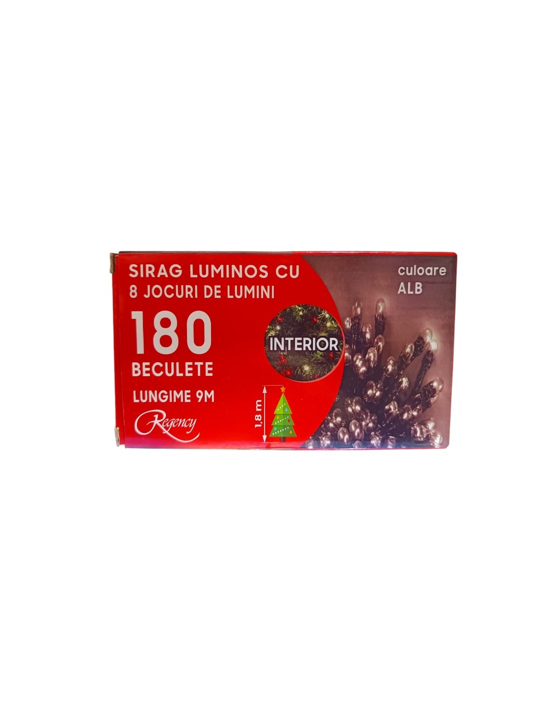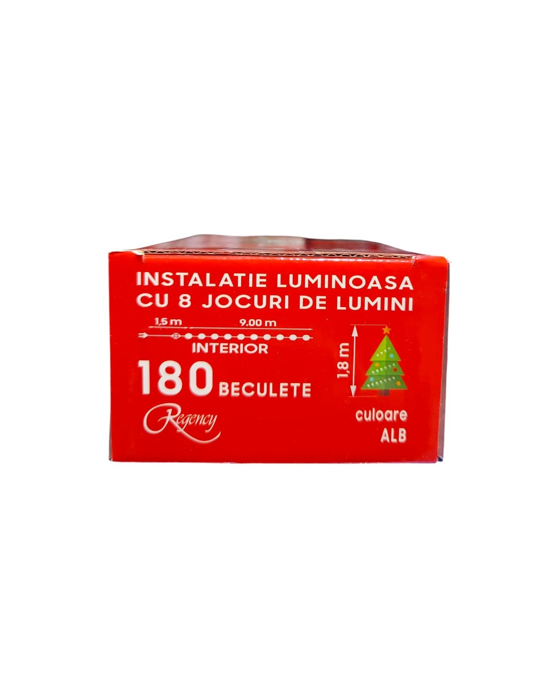- Cu 180 de beculețe albastre , această instalatie emite o lumină caldă și primitoare. Culoarea roșie adaugă o notă festivă și tradițională decorului de Craciun.