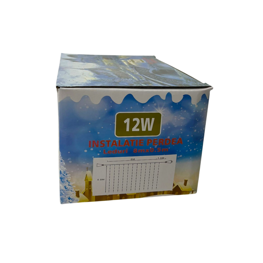 Este o instalație LED decorativă — un șir de 200 de LED-uri dispuse pe o lungime totală de 8x0.5 metri.