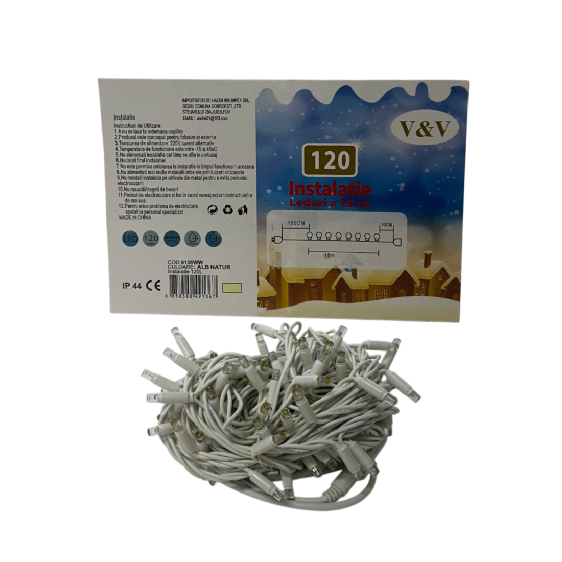 Instalarea este simplă — se întinde șirul acolo unde dorești: de obicei în jurul bradului, ferestrelor, terasei, gardului etc. LED-urile mici permit un aspect discret și uniform.