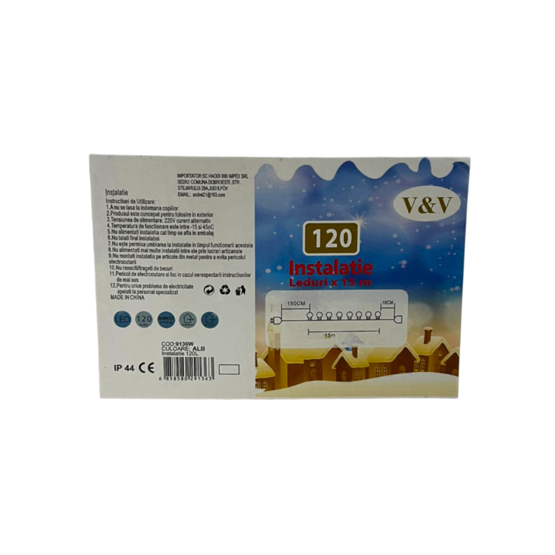 Instalatie liniara cu 120 leduri alb rece,15 metri, P9136