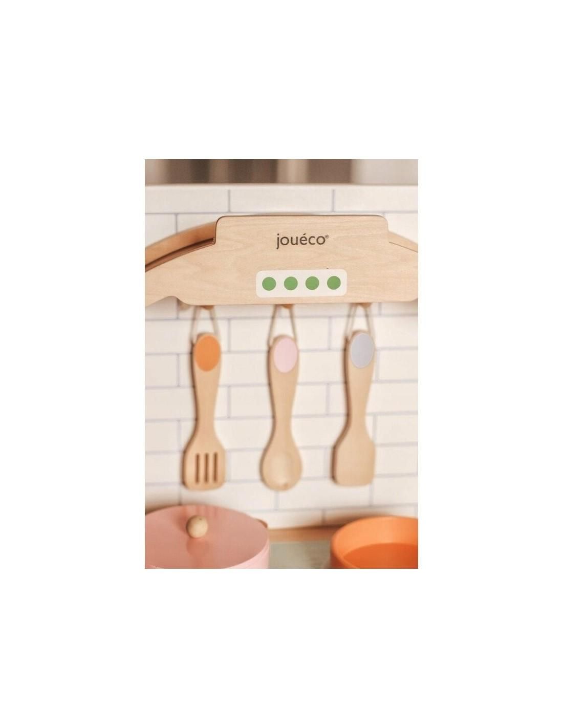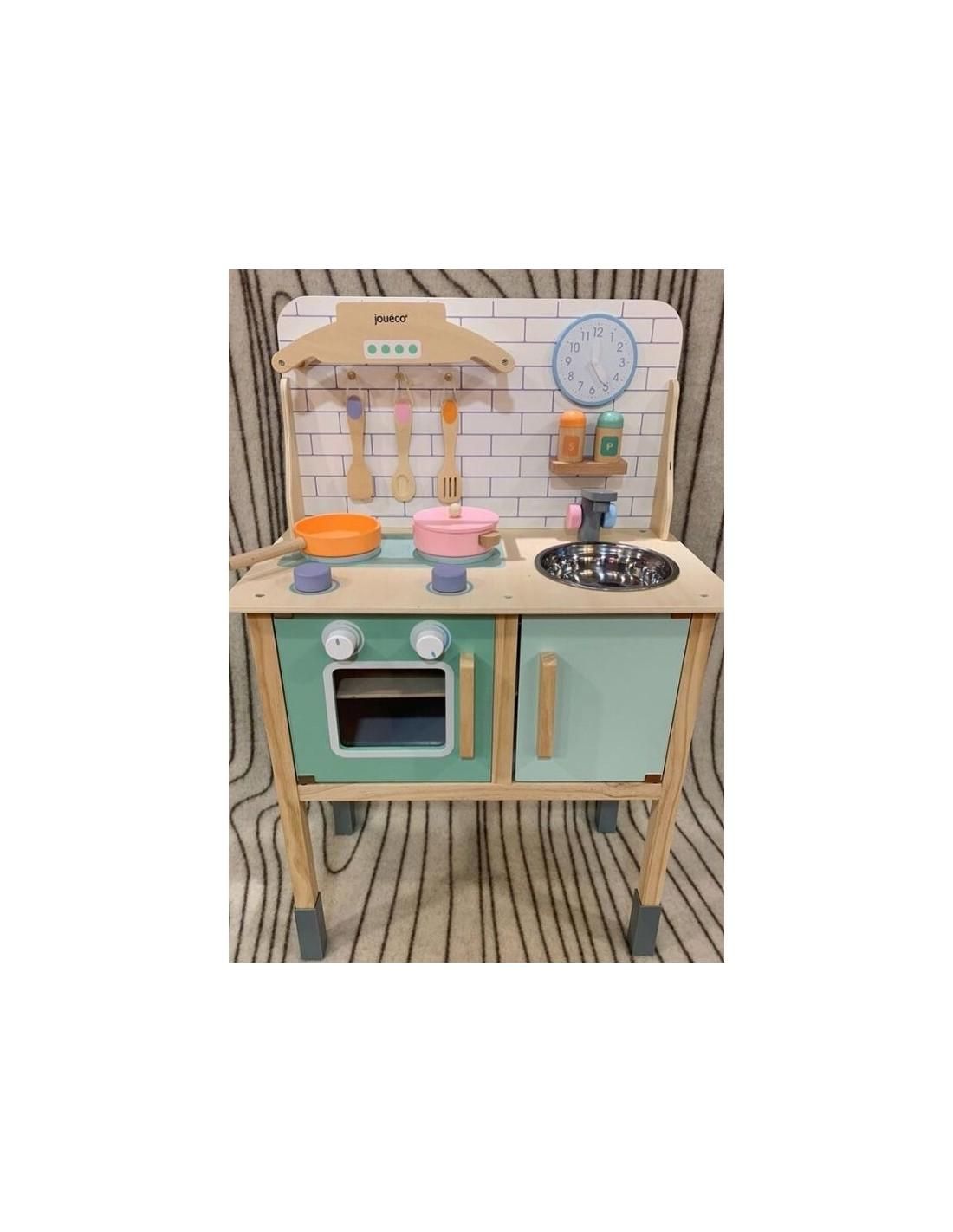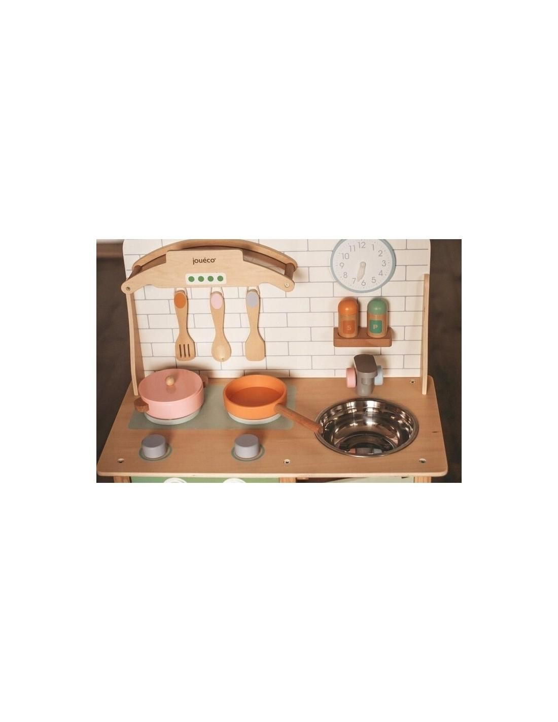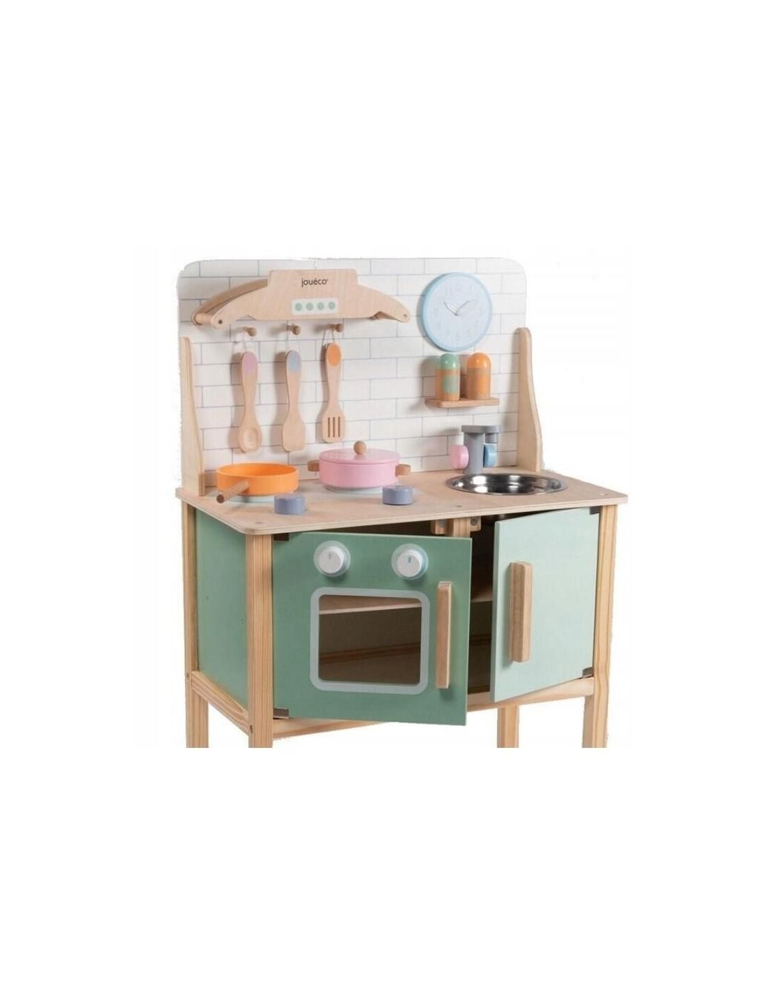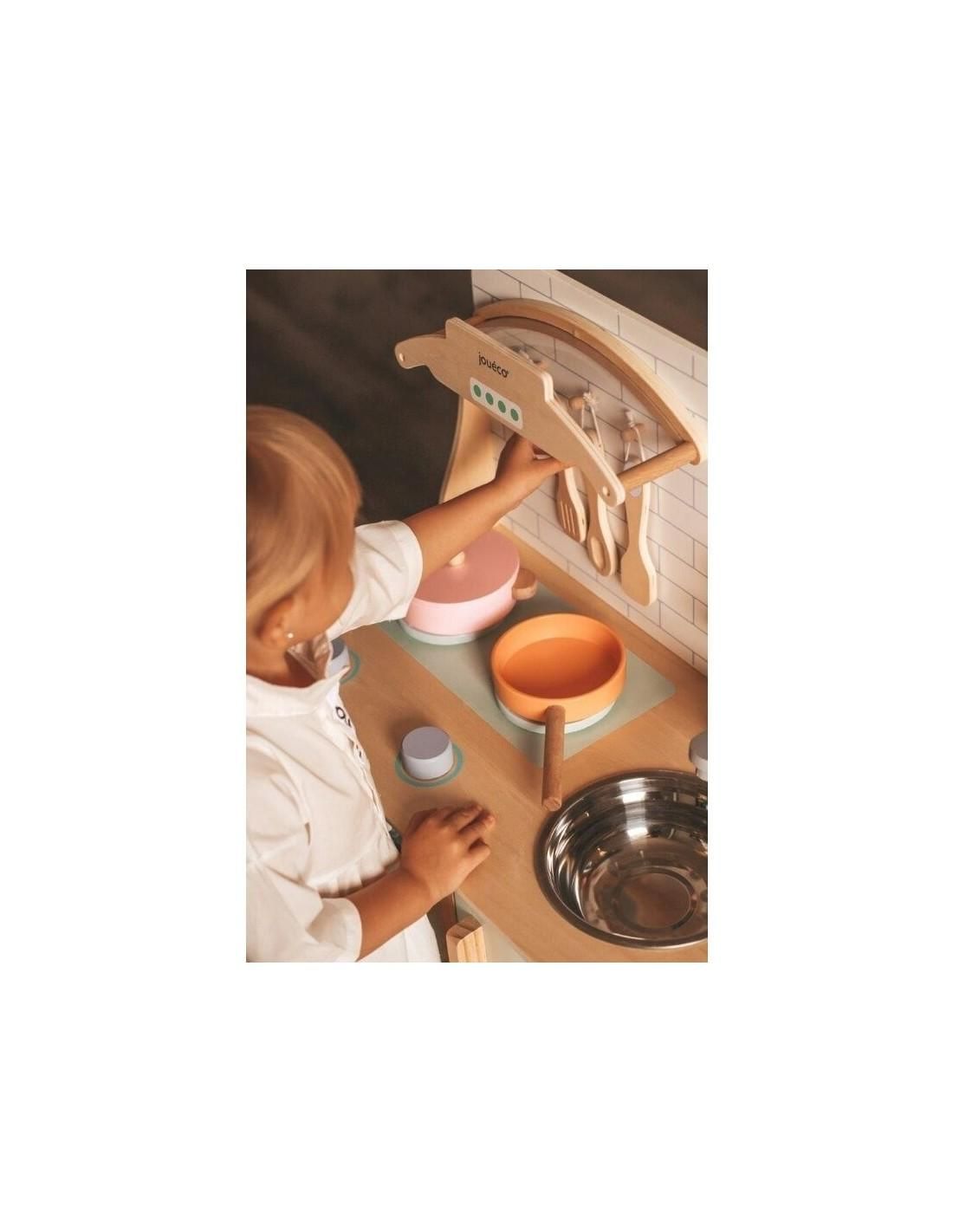 Joueco - Bucatarie lemn certificat FSC, Cu accesorii, Reglabila pe inaltime, 86x56 cm, 3 ani+, Multicolor