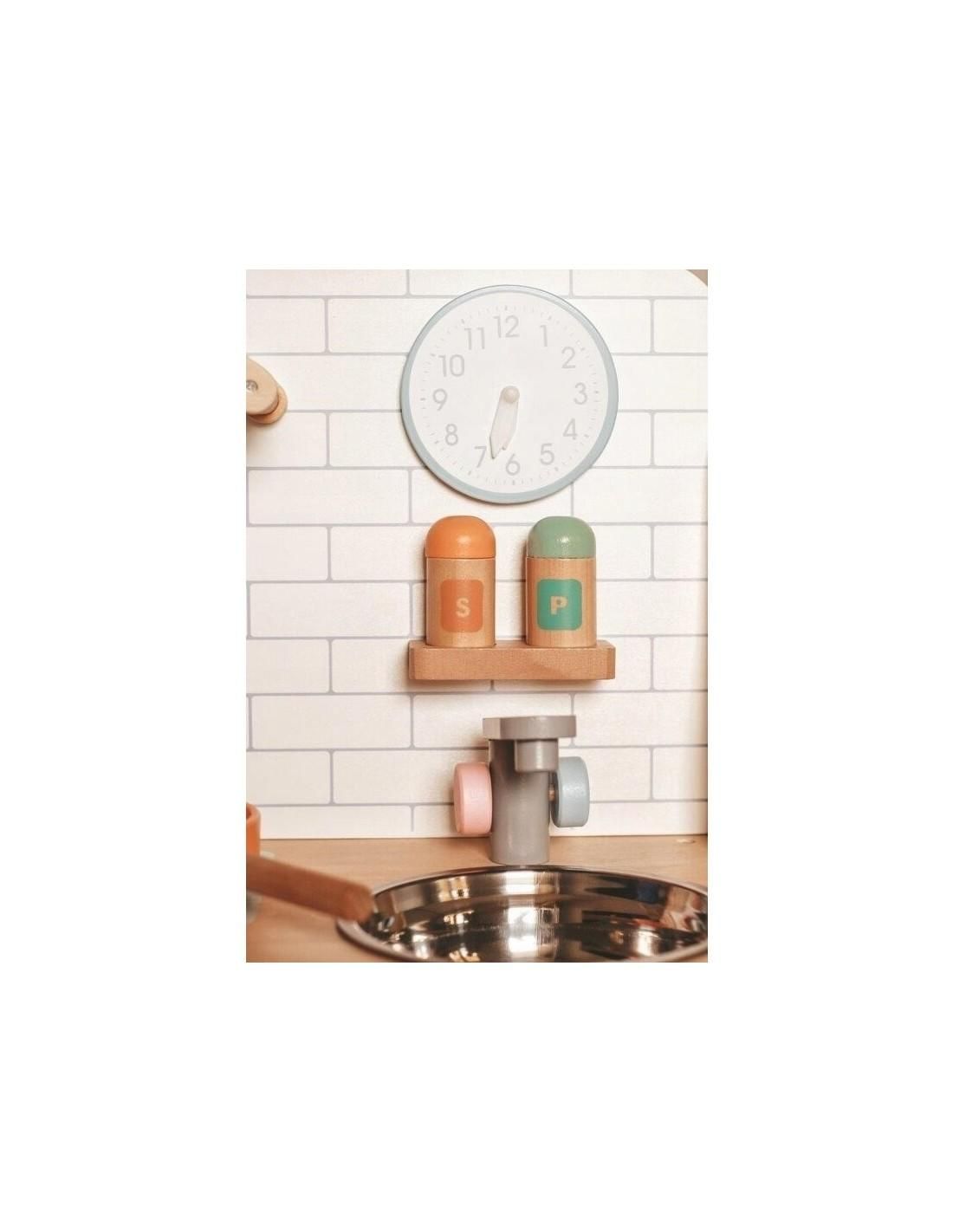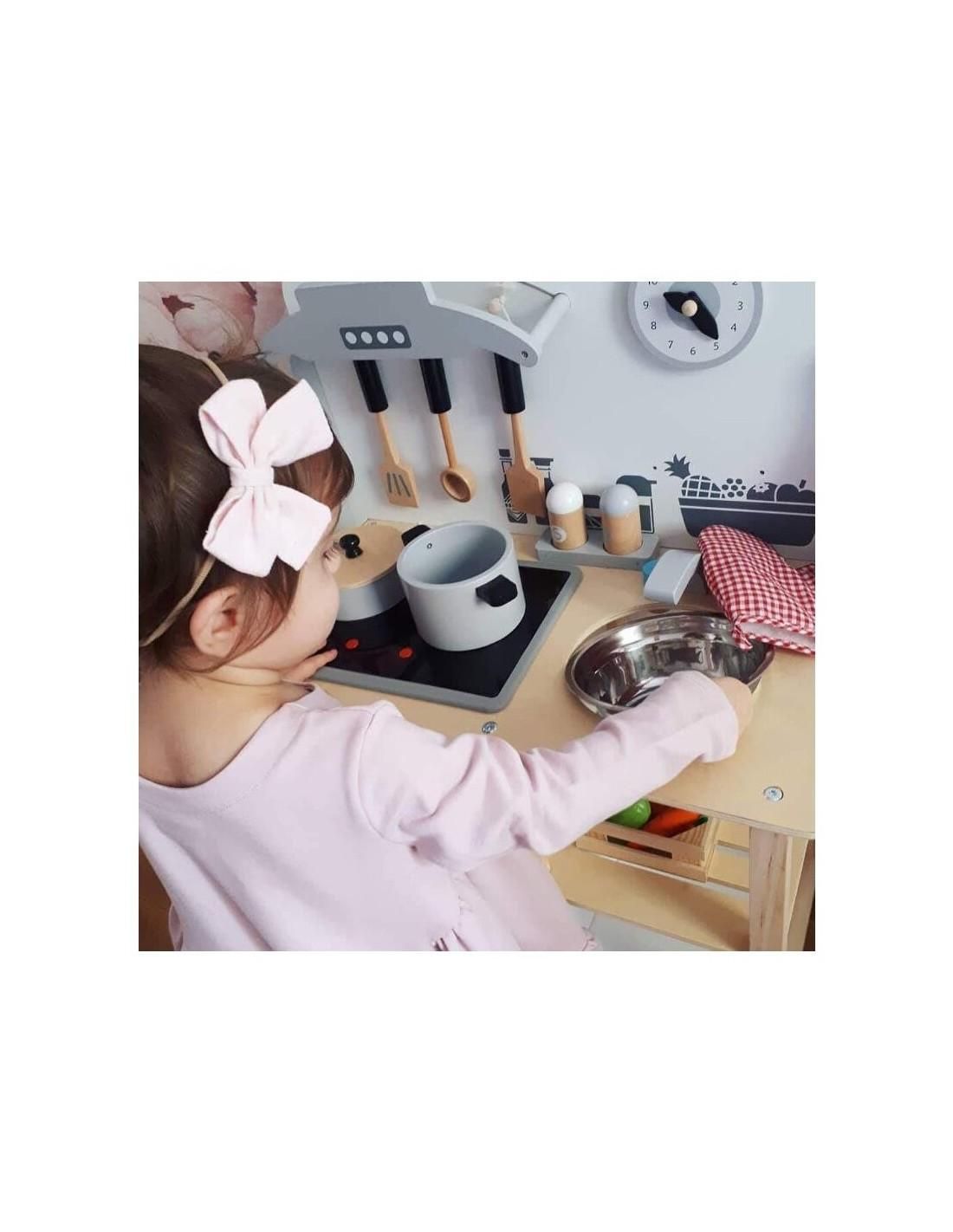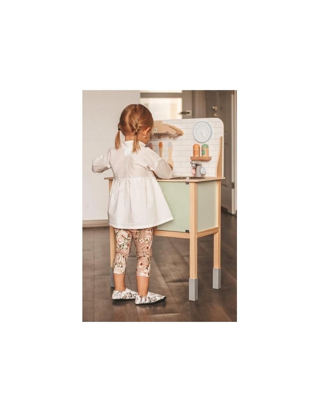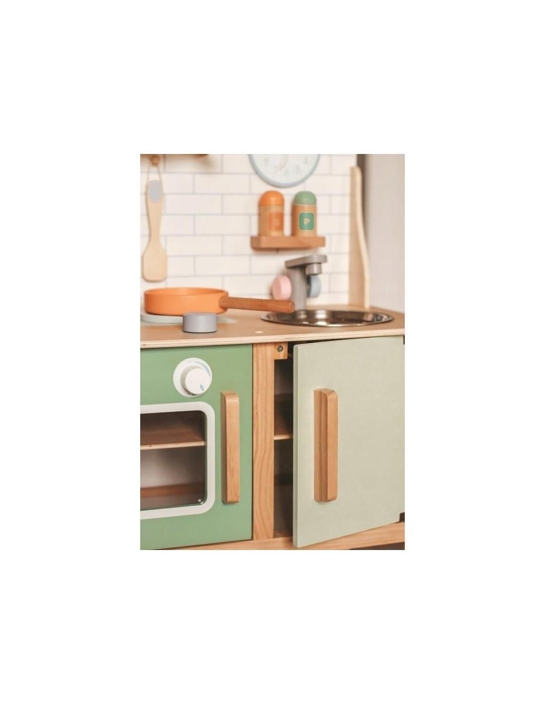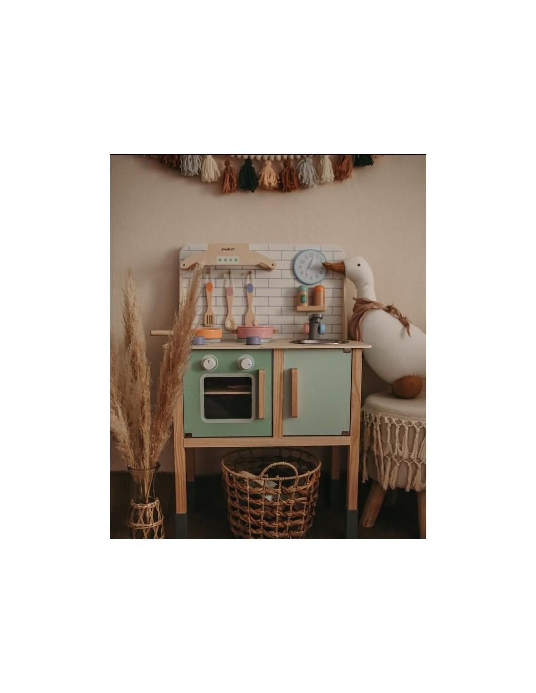 Joueco - Bucatarie lemn certificat FSC, Cu accesorii, Reglabila pe inaltime, 86x56 cm, 3 ani+, Multicolor