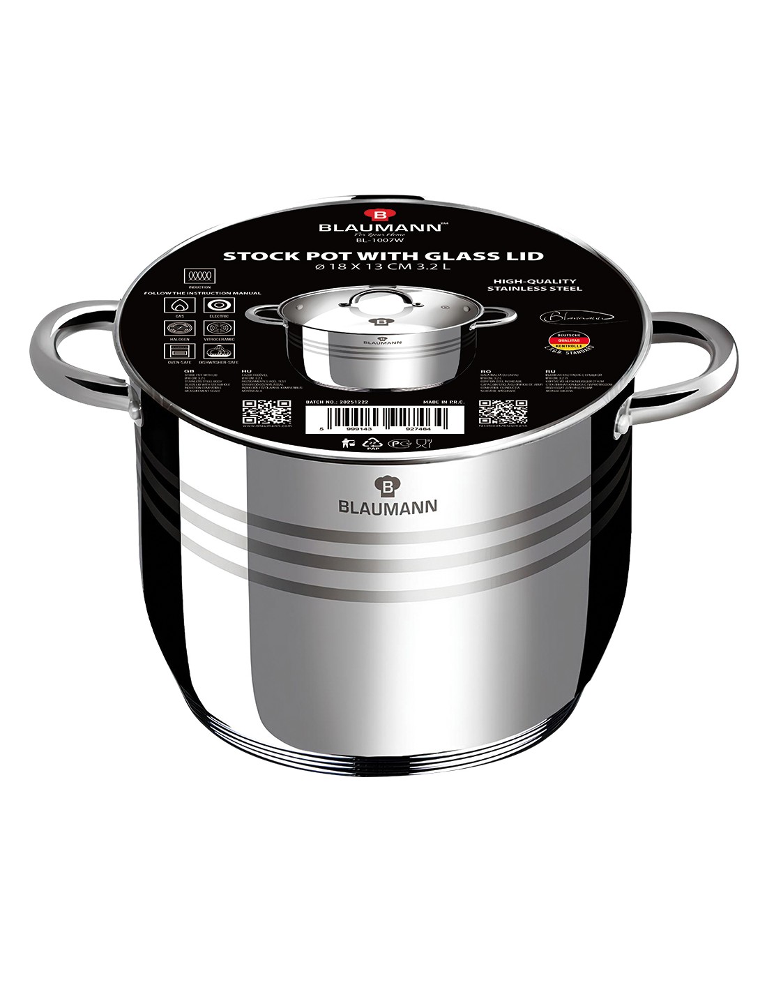 Oala inox cu capac, BL-1007A, 18 cm, Gourmet Line Blaumann