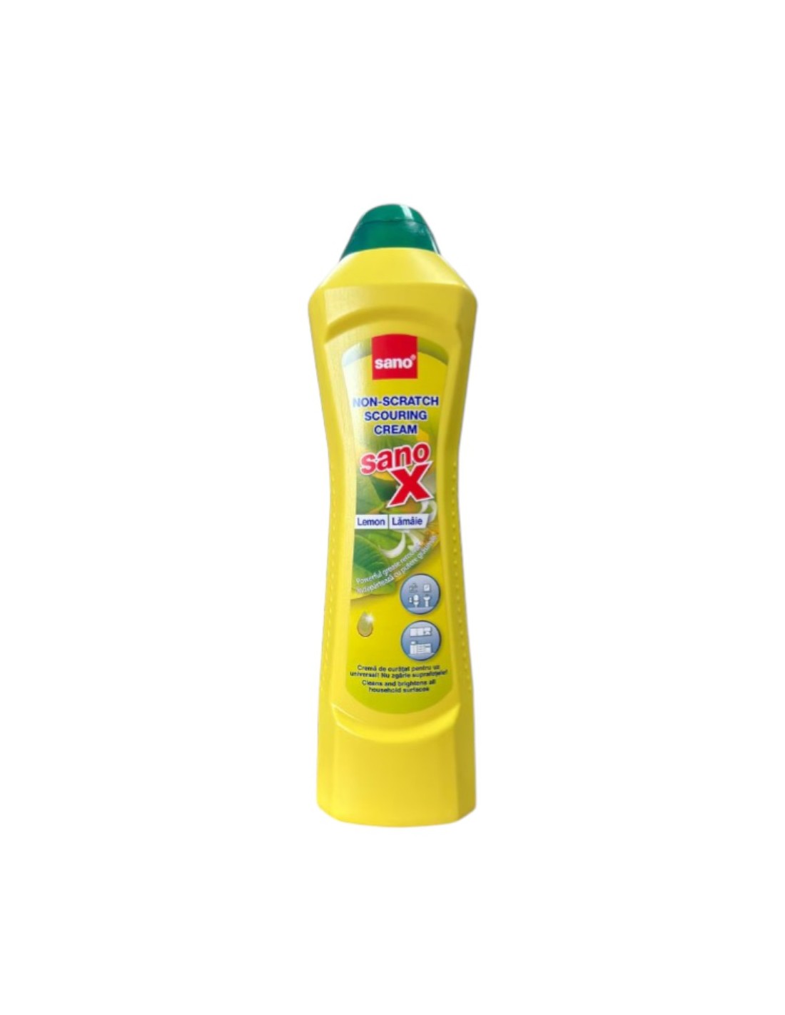 Crema de curatat universala Sano X Cream Lemon 750 ml este o cremă de curățat universală cu aromă de lămâie eficientă și versatilă, concepută pentru curățenia de zi cu zi în baie și bucătărie.